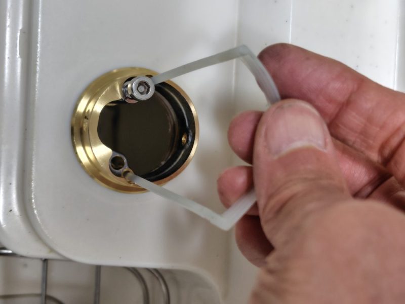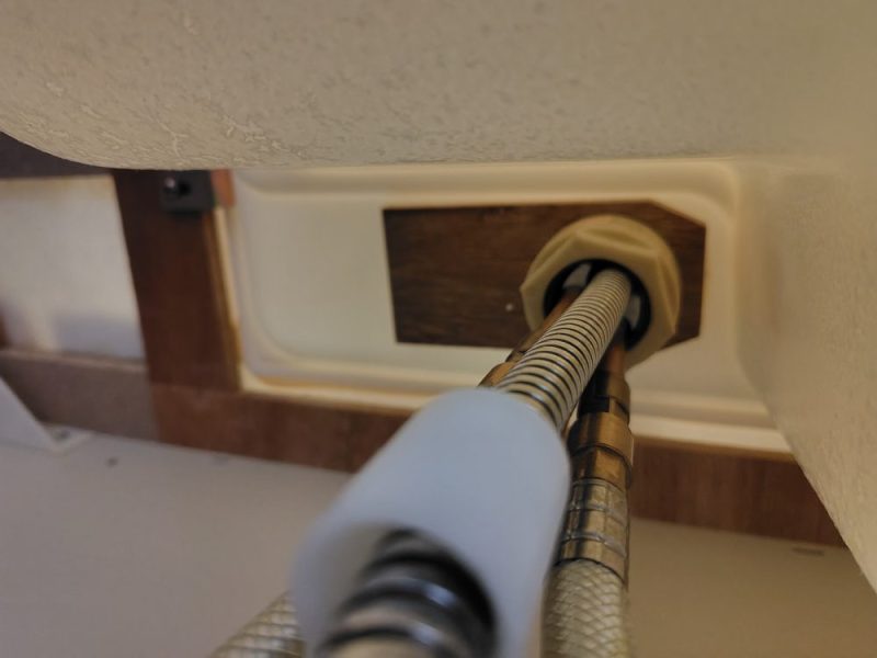 本体はシンクの下から大きなナットで締め付けられています。